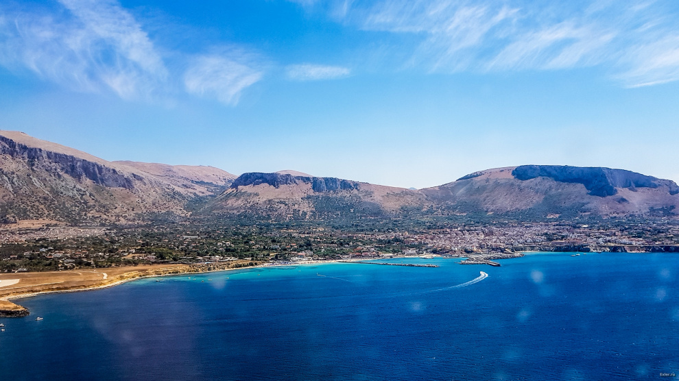 Сицилия в изрядно загрязненном окне иллюминатора самолета.