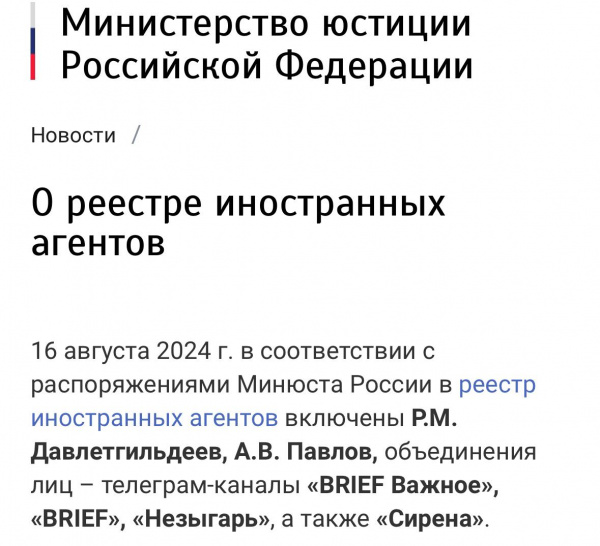 Прям какие-то интересные новости. Ладно когда они всех более или менее независимых журналистов/блогеров в иноагенты включают, но оба BRIEF всегда были прокремлевскими телеграм-каналами!