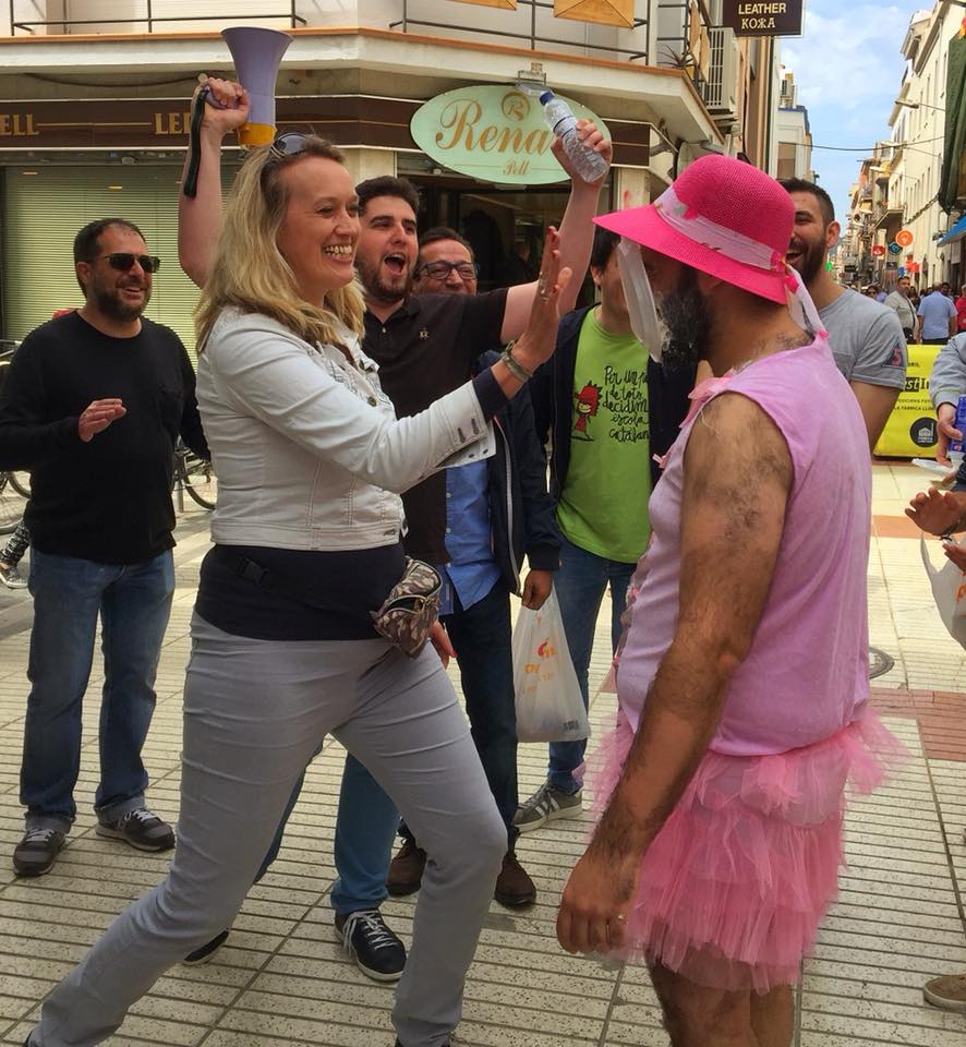 Оказывается, здесь есть такая традиция. Во время мальчишника на жениха напяливают какую-то нелепую одежду, после чего водят его по улице и предлагают всем желающим за евро залепить ему в физиономию тарелку со взбитыми сливками. Судя по тому, что в пакете, который они несли, болталось где-то пятьдесят евро, этой возможностью воспользовались очень многие.