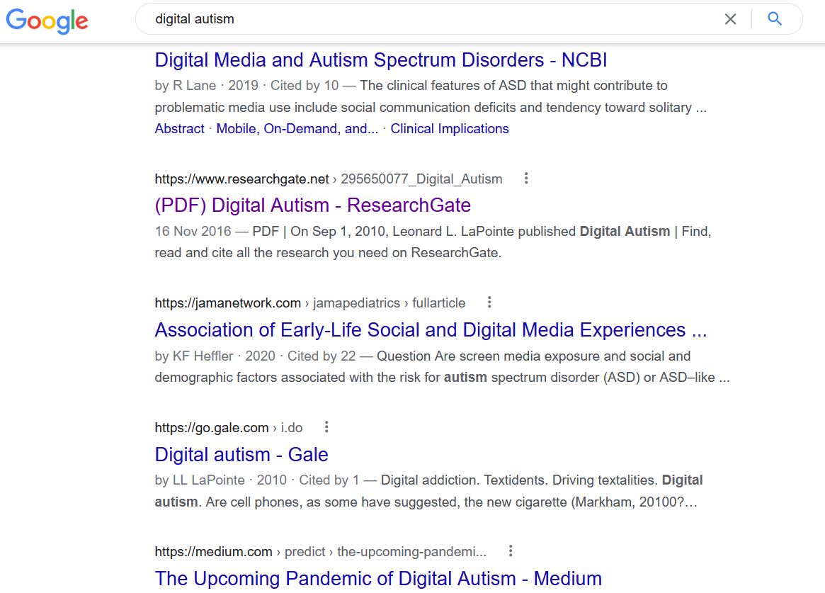Только вот жупел "цифровой аутизм" нынче используют для всех возрастов, а еще у них бывает "цифровая деменция"...