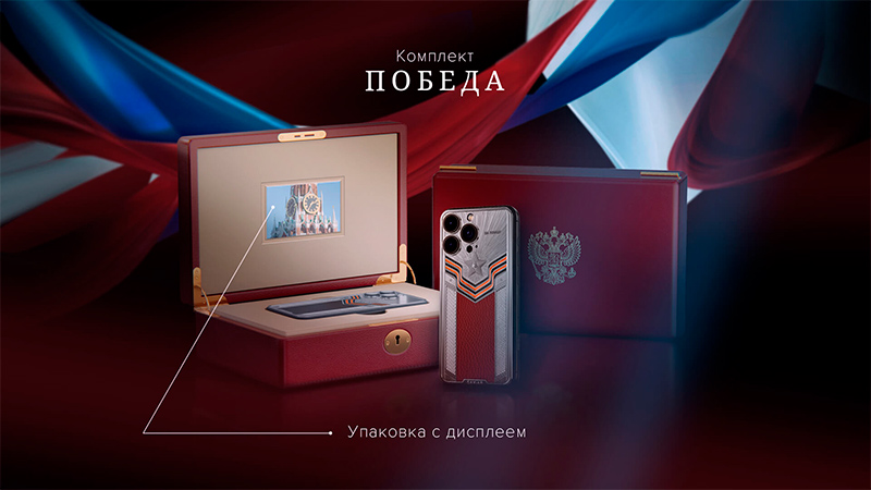 На этот раз каждый, кто закажет комплект, получит телефон в особенном футляре со встроенным дисплеем. При распаковке футляр будет воспроизводить патриотическое видео о победе. Также при открытии коробки будет звучать песня “День Победы”.