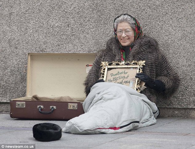 P.S. Разумеется, это была не просто хохма, а художественная инсталляция, призванная привлечь внимание к проблемам бездомных и нуждающихся людей, которым подают значительно менее охотно, чем побирающейся королеве.