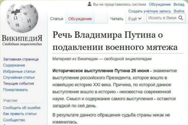 Кстати, я читал, что в оригинале обращения прозвучали слова "Дорогие друзья, сегодня еще раз обращаюсь к вам", однако в выложенном в Rutube ролике, откуда я его и взял, начало явно обрезано. Видимо, было записано и другое, в полном смысле слова судьбоносное обращение, но решили пока просто поблагодарить мятежников и разрешить им заключить контракт с Минобороны.