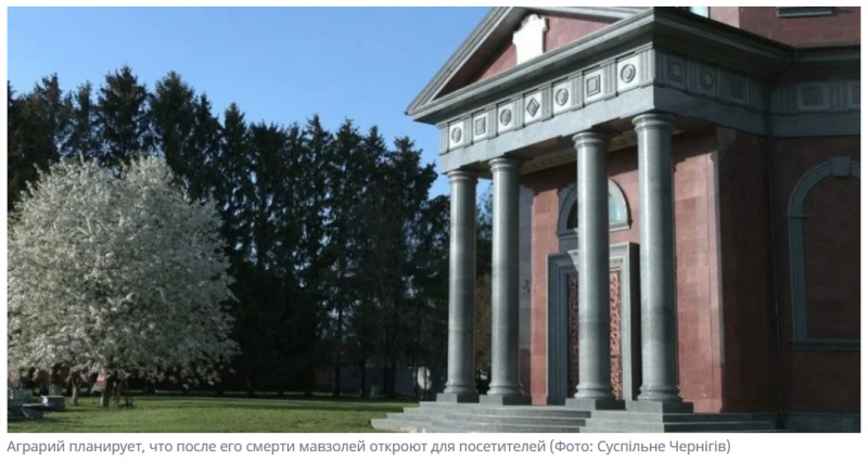 Как говорится в программе Суспільного Кадры, мавзолей будет открыт для посетителей после смерти фермера.