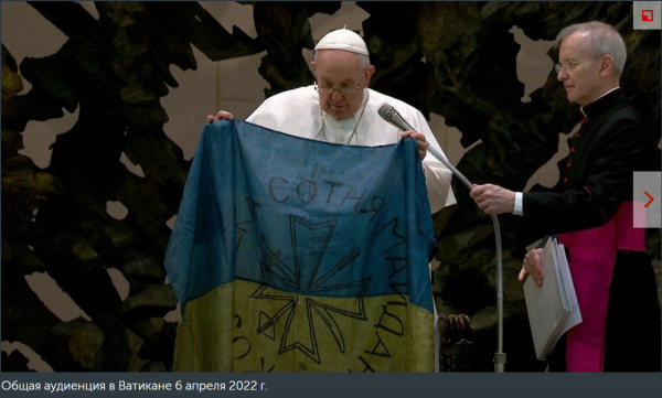 «Последние новости о войне в Украине не приносят облегчения и надежды, но свидетельствуют о новых зверствах, таких как резня в Буче, – всё более чудовищная жестокость, также в отношении беззащитных гражданских лиц, женщин и детей, – с горечью сказал Папа. – Невинная кровь этих жертв взывает к небесам и умоляет: ‘Да прекратится эта война! Да умолкнет оружие! Хватит сеять смерть и разрушение!’. Помолимся об этом вместе».