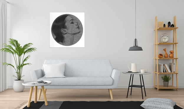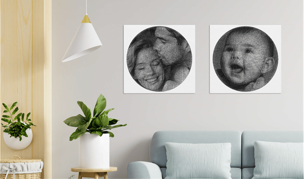 Черная нить и белая основа – классический контраст, на котором отлично смотрится любая фотография. Парные фото, личный портрет: вы можете быть уверены в том, что ваша половинка подберет подходящую идею для картины!