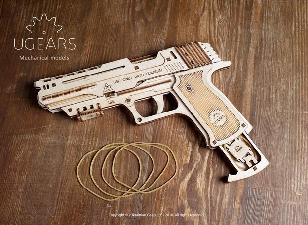 UGEARS – это механические модели, которые целиком собираются из дерева, без клея или специального крепежа. Каждая деталька вырезана из натуральной древесины на высокоточном лазерном станке, к ней очень приятно даже просто прикасаться, а уж выглядит готовый конструктор просто бомбически. Плюс все модели действующие: автомобили ездят, шкатулки запираются, пистолеты стреляют – это настоящее торжество механики!