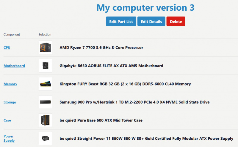 Прежде всего, AMD Ryzen 5 7600X я заменил на AMD Ryzen 7 7700. Да, он заметно дороже (в 1,7 раз), но при этом: потребляет 65 ватт, а не 105, то есть холоднее; быстрее на 20%; а главное - содержит видеоядро AMD Radeon Graphics (Ryzen 7000), которого мне для моих задач должно вполне хватить. Ну и также у него в комплект входит достаточно качественный кулер, так что отдельный кулер я пока не покупаю. И у меня остается пространство для маневра: если комплектный кулер не понравится, то я его всегда смогу заменить его на Noctua NH-D15S (например), а если не будет хватать видео, то тогда буду брать что-то вроде GeForce RTX 3060, но я почти уверен, что сумею обойтись встроенной графикой.