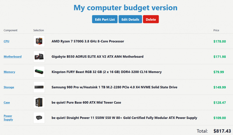 Прежде всего, большое спасибо за комментарии ко вчерашнему посту с подбором комплектующих: как обычно в таких случаях, было очень полезно и познавательно. По результатам ценных (без дураков) советов, сделал корректировку, и теперь подбор комплектующих выглядит следующим образом.