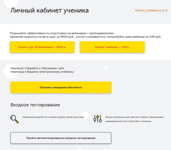 Входной тест поможет определить проблемные темы и выстроить индивидуальный план обучения. А баллы рейтинга и график успеваемости показывают прогресс.