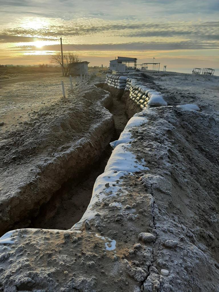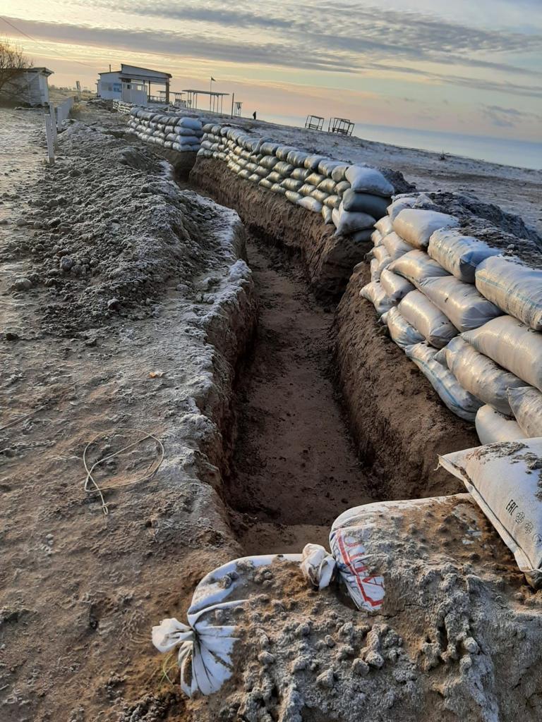 После нескольких недель раскопок территория вокруг небольшого города Медведовка, расположенного недалеко от перехода на материковую Украину, покрыта сложной системой траншей протяженностью в несколько километров. Проходы прорезаны в земле под углом, чтобы солдаты могли вести огонь с большей дальности. Рядом находятся другие укрепления, в том числе глубокие рвы, предназначенные для захвата танков и тяжелой техники.