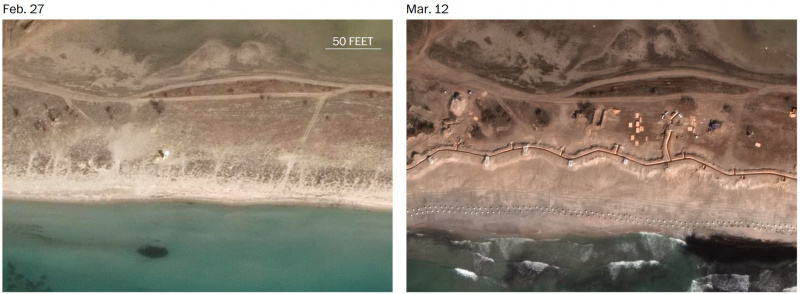 Спутниковые снимки показывают, что некоторые препятствия в Крыму были построены за считанные дни.