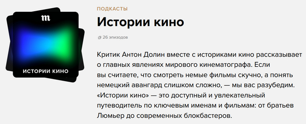 А вот его подкасты - очень интересные. У Долина энциклопедическое кинообразование, он прекрасно разбирается в кинематографе, да и вообще сам по себе - большая умница, всегда эти подкасты слушаю с большим удовольствием.