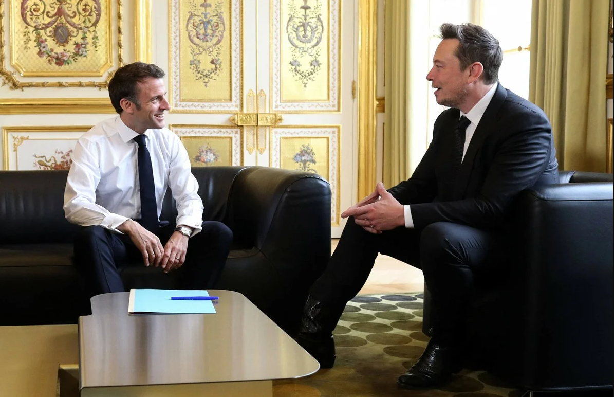 Это ж как так надо было ракурс и перспективу выставить. Или Макрон реально такой маленький, а Маск такой кабанище?