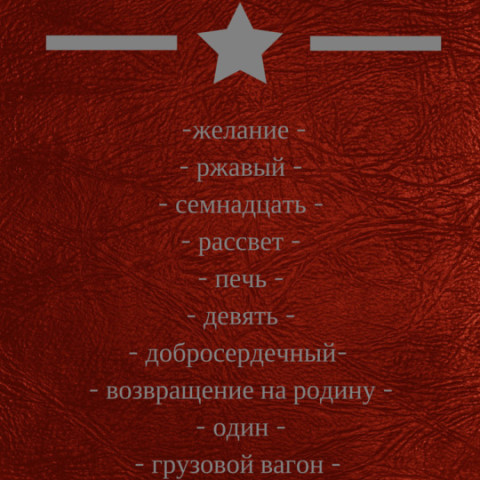 Ржавый — Семнадцать — Рассвет — Печь — Девять — Добросердечный — Возвращение на Родину — Один — Грузовой вагон ©