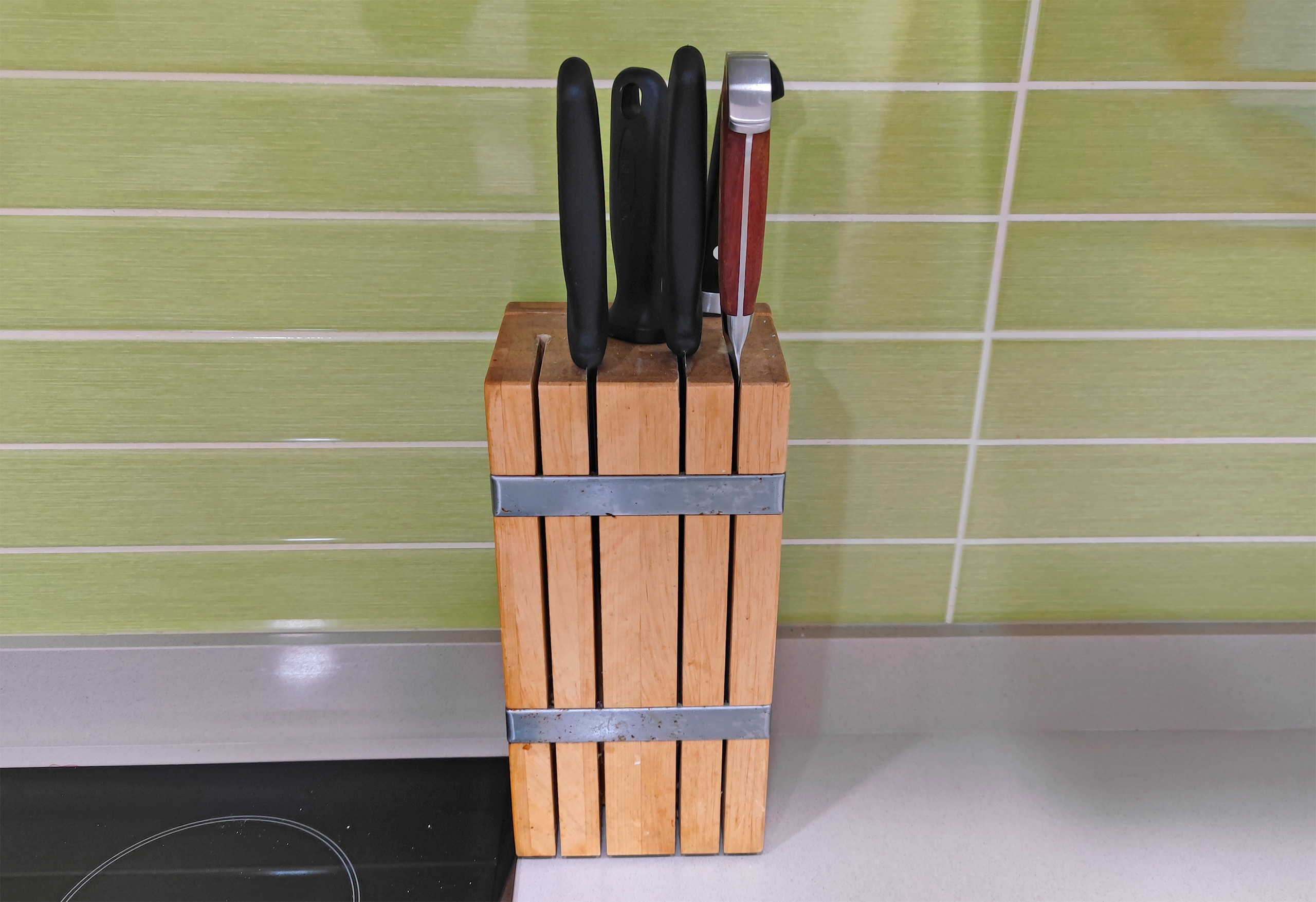 Раньше я использовал вот такую подставку-держалку для ножей (купил в ИКЕА вместе с набором ножей).