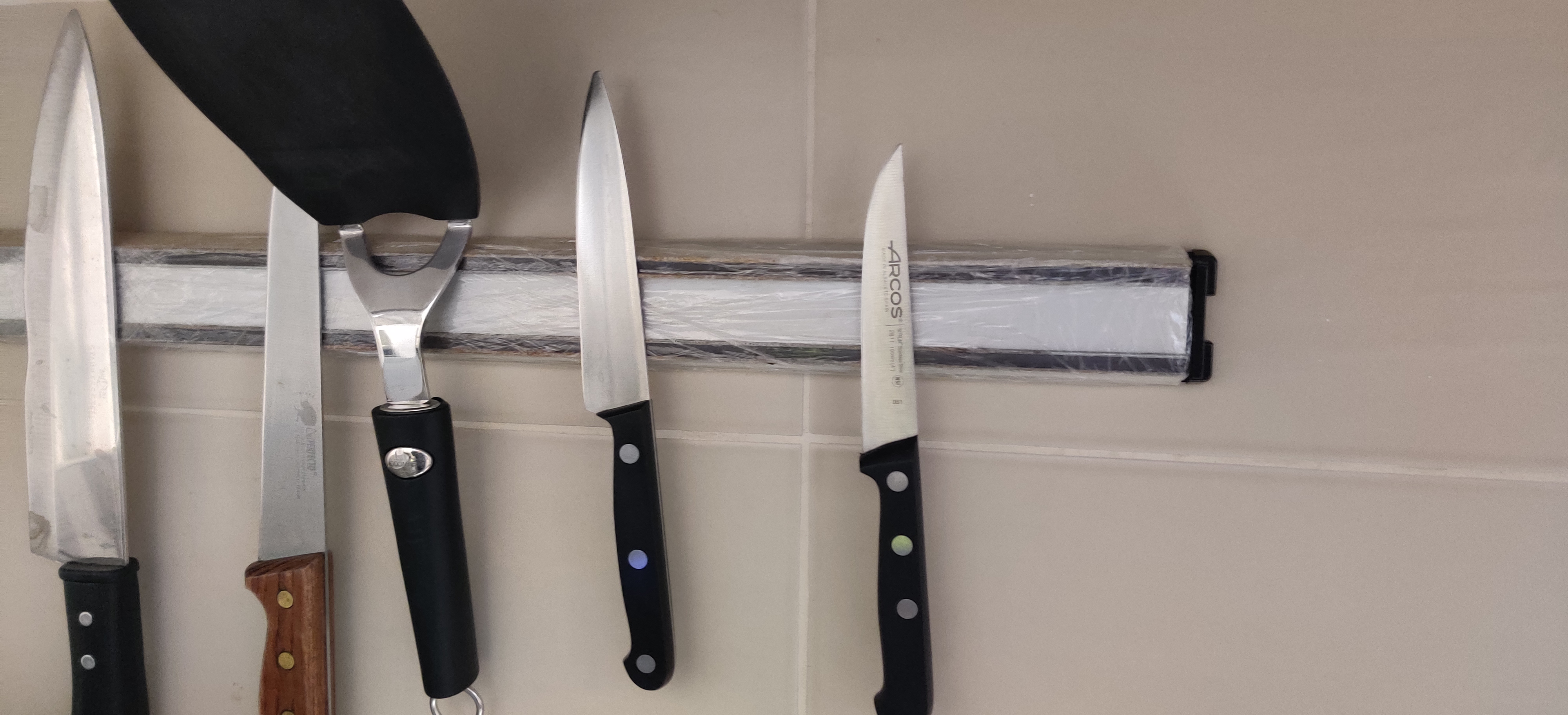 - поверхность ножа, плотно притянутая к магниту, может оставаться влажной, в отличие от свободно висящего ножа - что не есть гут для любого ножа, особенно из карбоновой стали, либо составного ламината;