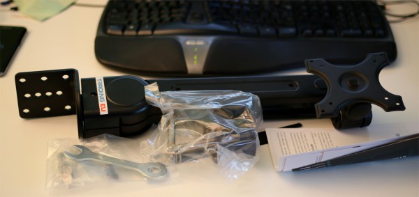 Картинка эта периодически мелькала в блоге и меня спрашивали, а чего я не приобрету крепление Vesa и не прикреплю монитор к стене. К стене мне не хотелось и тогда я нашел вот такой простой вариант.