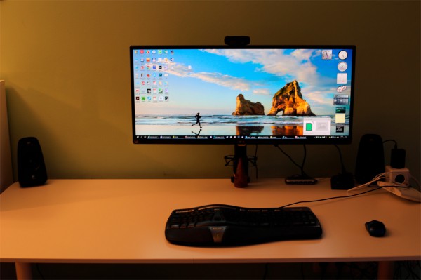 Сначала монитор у меня стоял на подставке. Но подставка была низковата, а я привык, чтобы монитор находился на уровне глаз. Надо было подложить под подставку пару книг, но так как я не держу дома аналоговые книги, роль удлинителя сыграл двухдисковый NAS.