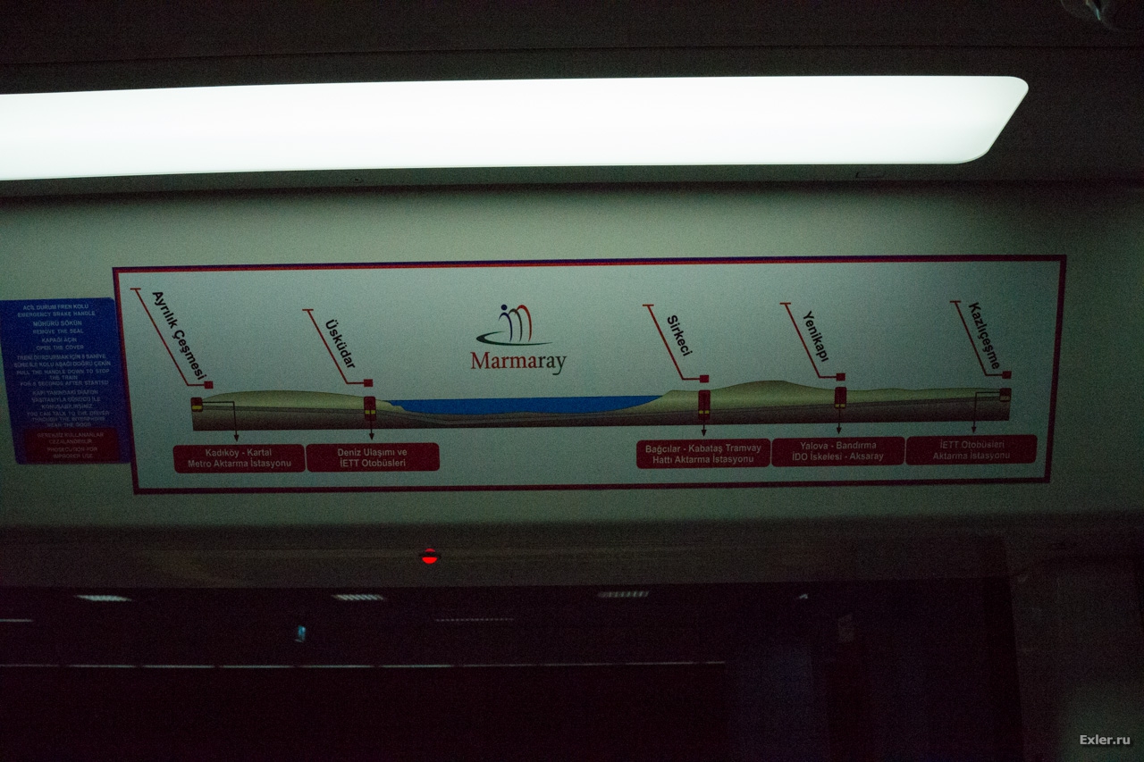 Кстати, в первый же день пуска поездов был неприятный инцидент: в какой-то момент отключилось электричество, поезд остановился под Босфором и людям пришлось часть пути проделать пешком. Оппозиционная пресса разразилась саркастичными статьями по этому поводу. Но неполадки быстро ликвидировали, поезда снова пошли.