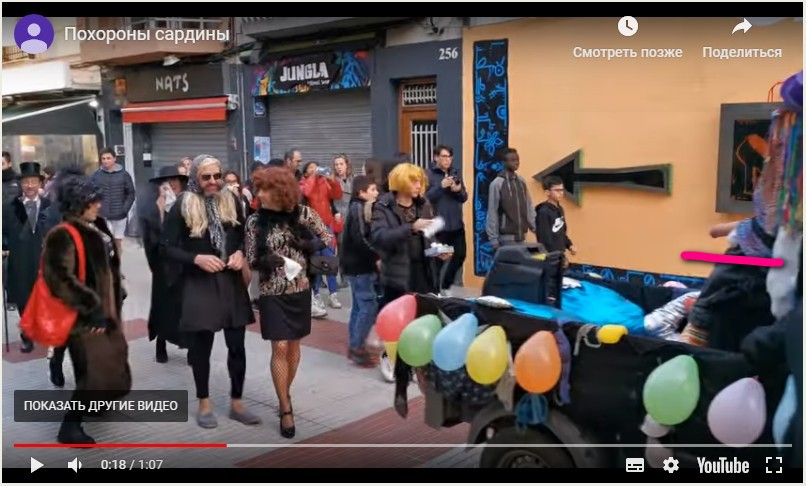 В этом году "Похороны сардины" в Калейе провели как-то странно: еще до окончания карнавала прямо в "Пепельную среду". То есть они шутливо похоронили сардину, подготовились к посту, а в субботу еще будет бушевать карнавал.
