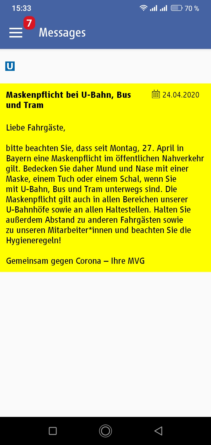 У нас в Ганновере на остановках пишется, что ношение масок в транспорте и на остановках - обязательно. Когда это приняли, я без понятия. Вышел пару недель назад ехать на работу, смотрю на остановке все в масках, посмотрел на табло, а там эта информация высвечена.