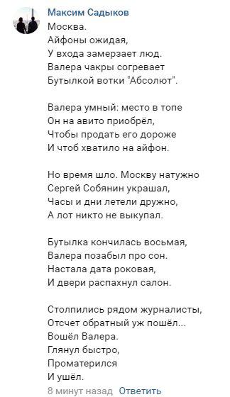P.P.S. Они просто любят стоять в очередях: "Я тут единственный в очереди, кто стоит за iPhone себе. Мы уже это проверили, я сам в шоке был. Я это делаю не для того, чтобы потом сказать: смотрите, у меня новый iPhone. Я слышал, что во всем мире так ждут каких-то новинок, стоят очереди большие. Я пришел, взял вещи какие-то теплые, потом буду вспоминать об этом".