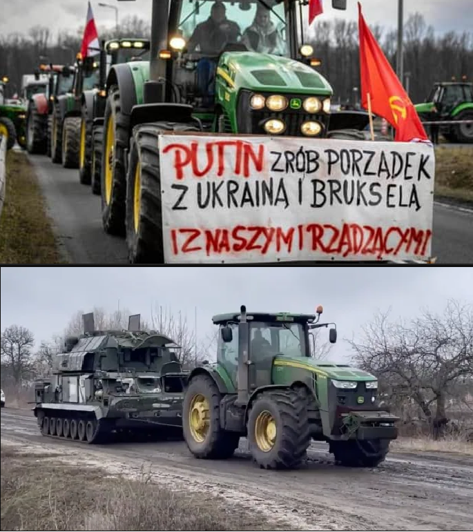 Вчера вечером по соцсетям завирусилась фотография польского трактора с флагом СССР и плакатом: "Путин, разберись с Украиной, Брюсселем и нашим руководством".
