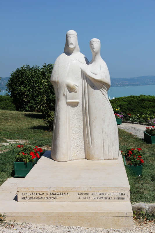 Рядом с храмом располагается странноватая скульптура, изображающая короля Андраша I, основателя аббатства, и его жену - венгерскую королеву Анастасию. Анастасия была дочерью Ярослава Мудрого и Ингигерды Шведской. При этом на постаменте скульптуры красуется еще более странная надпись о том, что Анастасия, дескать, украинская княгиня.