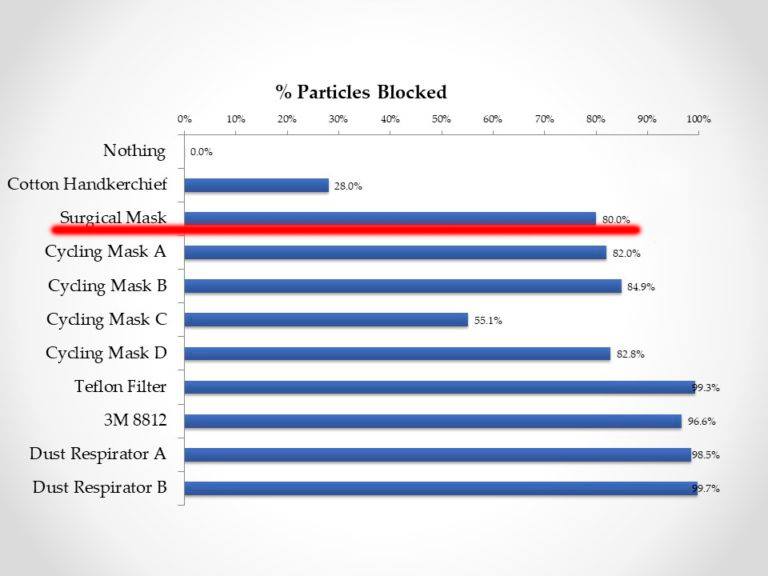 Мы изучаем эффективность масок для лица и различных респираторов на людях и дыхательных манекенах, а также с точки зрения проникновения частиц через обычную хирургическую маску, она может достигать 50% или даже больше», — объясняет он. «Это бесполезно для людей, которые хотят носить это устройство, чтобы защитить себя. Хирург в операционной не хочет чихать или кашлять и заражать пациента. Хирургическая маска может служить адекватным барьером для этой цели, но что о вирусах и бактериях, аэрозольных от пациента во время операции? Если эта аэрозоль происходит, хирург и другой медицинский персонал не защищены от него при ношении хирургических масок. Эти маски могут отфильтровывать очень большие капли, но не мелкие аэрозольные частицы