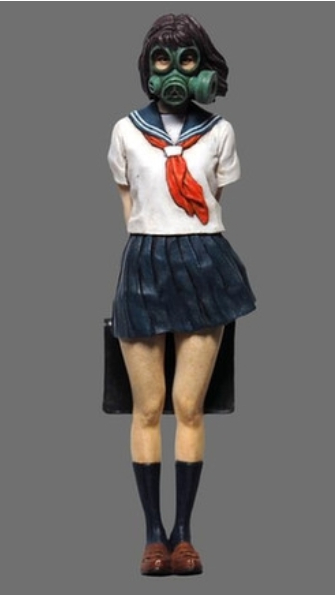 Шото анимешное - хрупка девушка в образе малолетки, в униформе с короткой юбкой и защитном средстве, что намекает на войну, следовательно, на насилие.