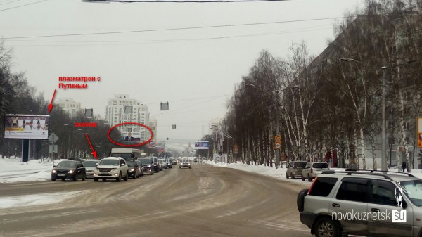 По словам горожанки Анастасии, сотрудники Госавтоинспекции уже который день стоят на проспекте Кузнецкстроевский, охраняя сразу три плаката с Владимиром Владимировичем.