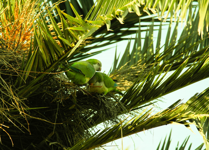 Почитал, выяснил, что именно из Латинской Америки их сюда и завезли. Причем прежде всего завезли зелененьких попугаев-монахов, с которыми в Латинской Америке ведется настоящая война, потому что они истребляют посевы. Но в восьмидесятых прошлого века предприимчивые люди сообразили, что на попугаях можно зарабатывать деньги, после чего их стали массово завозить в Испанию (прежде всего, в Каталонию, с которой у стран Латинской Америки традиционно были очень прочные связи) и продавать здесь в качестве домашних питомцев.
