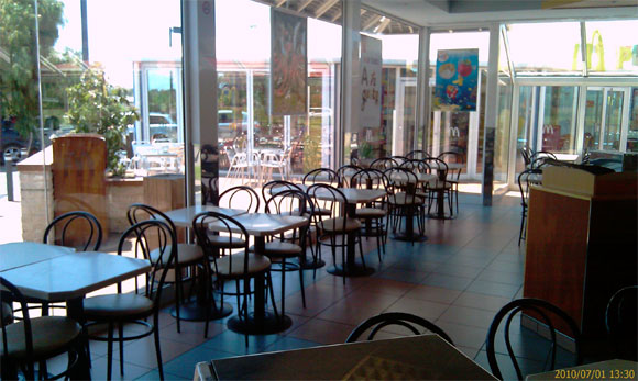 Рестораны диетического питания "Макдональдс" крайне популярны в Испании, где ценят хорошую и здоровую еду. Нижеследующее фото демонстрируют кошмарные очереди и жуткую давку в "Макдональдсе" городка Санта-Сусанна (Коста Брава) в самое что ни на есть обеденное время. Прям даже неприятно видеть, как люди практически теряют рассудок, лишь бы урвать жирный гамбургер и картошку-фри.