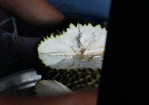 Как известно, его хранить нельзя, есть надо сразу же, а кроме того, дуриан очень непросто разделывать - нужно знать всякие тонкости. Поэтому мы его купили и попросили продавца разделать дуриан на месте.