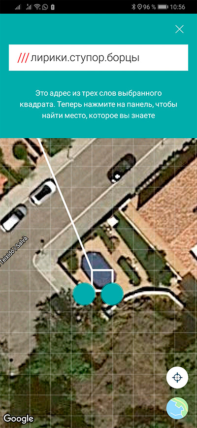 Кстати, в Google Maps есть похожая фича - plus codes. Только там координаты кодируются не в 3 слова, а в код из нескольких букв/цифр. Проще объяснить по телефону, нежели координаты, но w3w всё-таки удобнее. Хотя, с другой стороны, Google maps есть практически у всех, а тут надо новую программу инсталлировать.