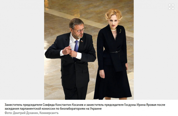 В Совете федерации в понедельник прошло очередное заседание парламентской комиссии по расследованию деятельности американских биолабораторий на территории Украины. Как заявили сопредседатели комиссии, анализ крови украинских военнослужащих показал, что они подвергались «секретным экспериментам», в результате которых были превращены в «жесточайших чудовищ».  (Отсюда.)