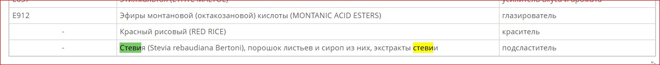Стевиозид разрешен.