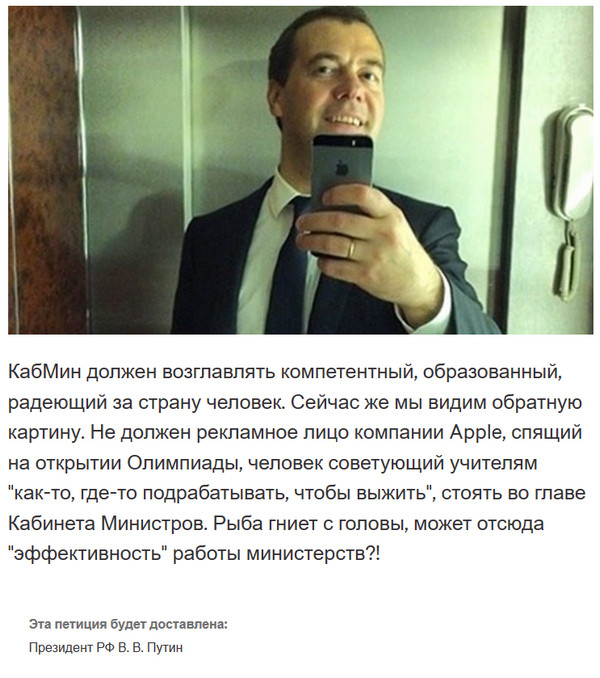 На Change.org трогательно собирают подписи под трогательной петицией за отставку Медведева.