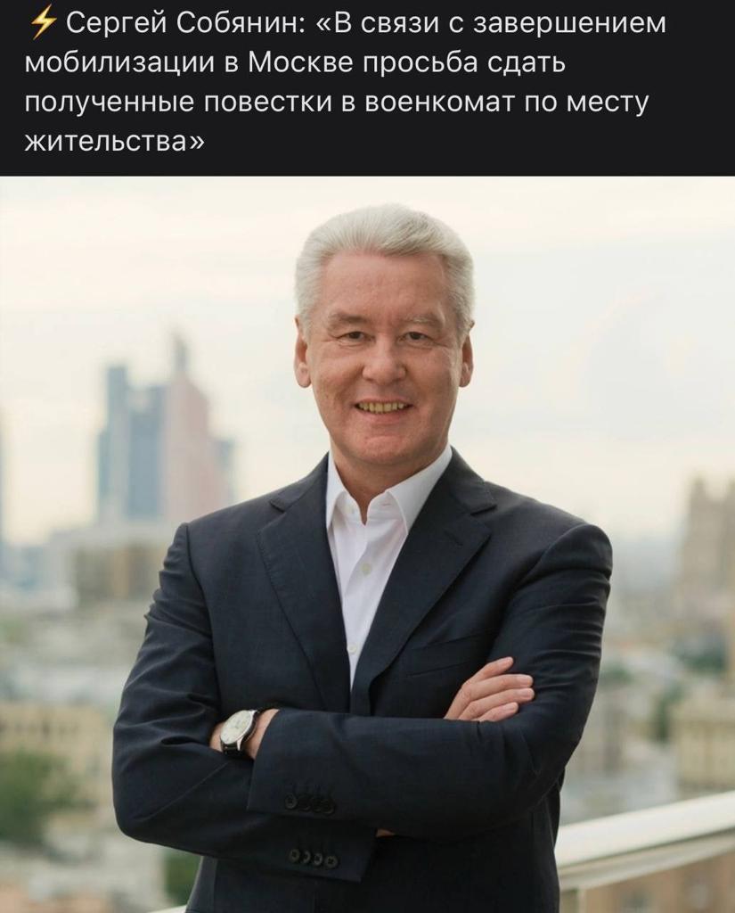 Цирк какой-то. Собянин объявил, что мобилизация закончилась, а повестки превратились в тыкву. При этом никаких полномочий для подобных заявлений у него нет. И что это было?!!