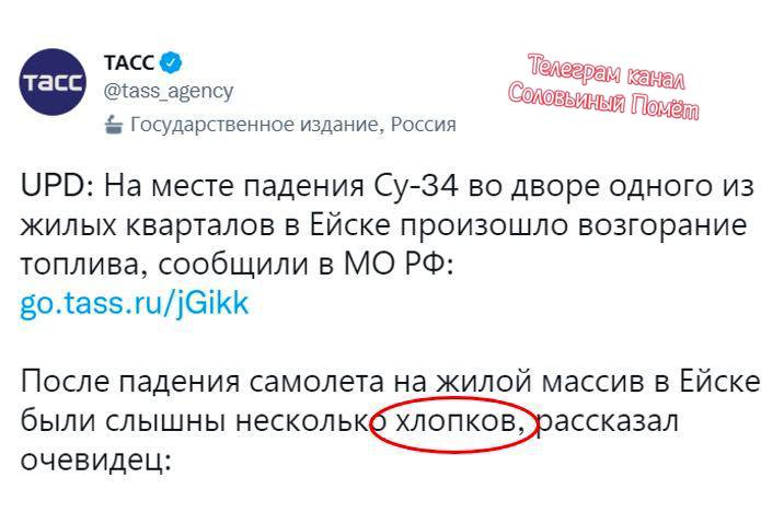 в МО уже подтвердили. однако меня вот это удивило: "Летчики катапультировались и доложили, что причиной крушения стало возгорание одного из двигателей при взлете;".то бишь, себя спасли, а вот жителей дома нет.