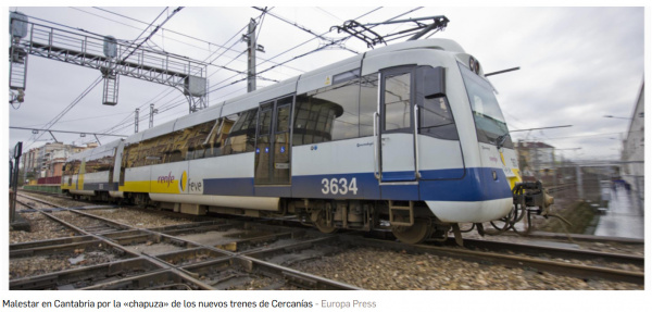 В Испании разгорелся серьезный скандал по поводу поездов, заказанных для Кантабрии - "El lío de los trenes de Cantabria que no entran por los túneles: esto es todo lo que se sabe".