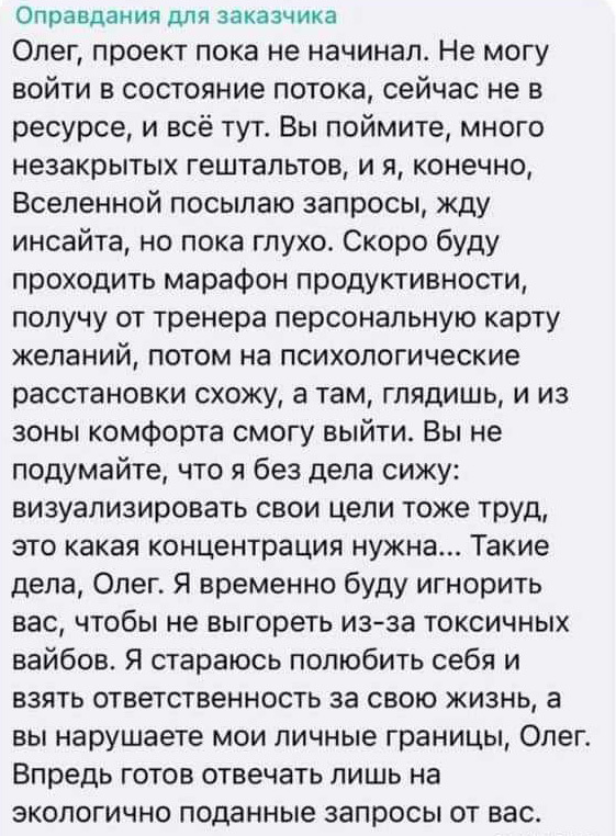Кажется мы с ним вчера пили одну и ту же дрянь. Ну или чел увлёкся каким-нибудь буддизмом. Вроде что-то написал, но одновременно и не понятно что.