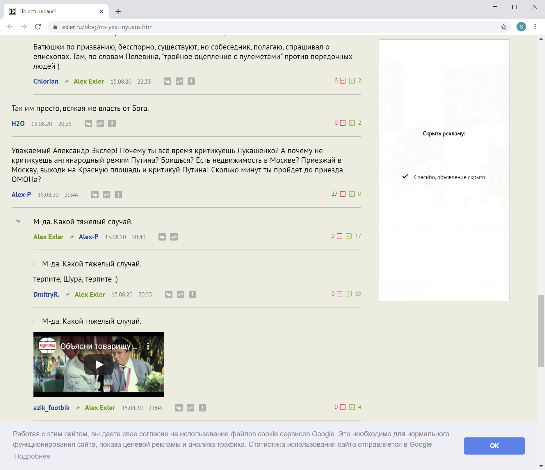 Я-то про старый (очень давний) разговор здесь, где Алекс поправил комментирующего относительно своего имени. Ещё как-то раз фото заграна Алекс выкладывал. И я просто про попов не читаю, обычно это хуже любой политической дрязги.