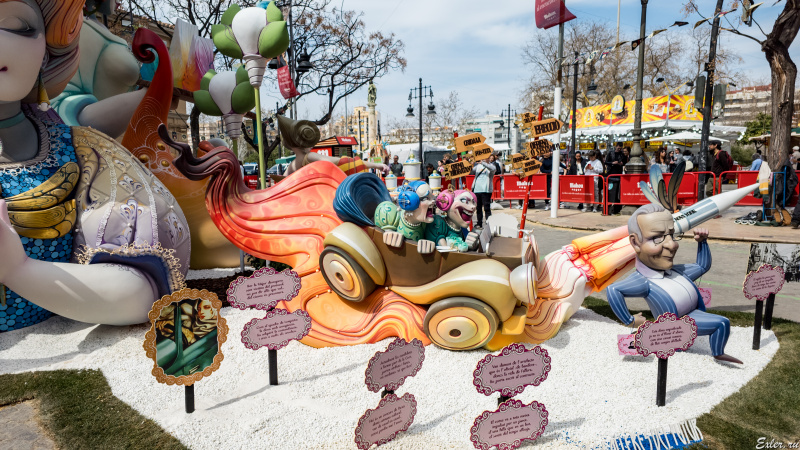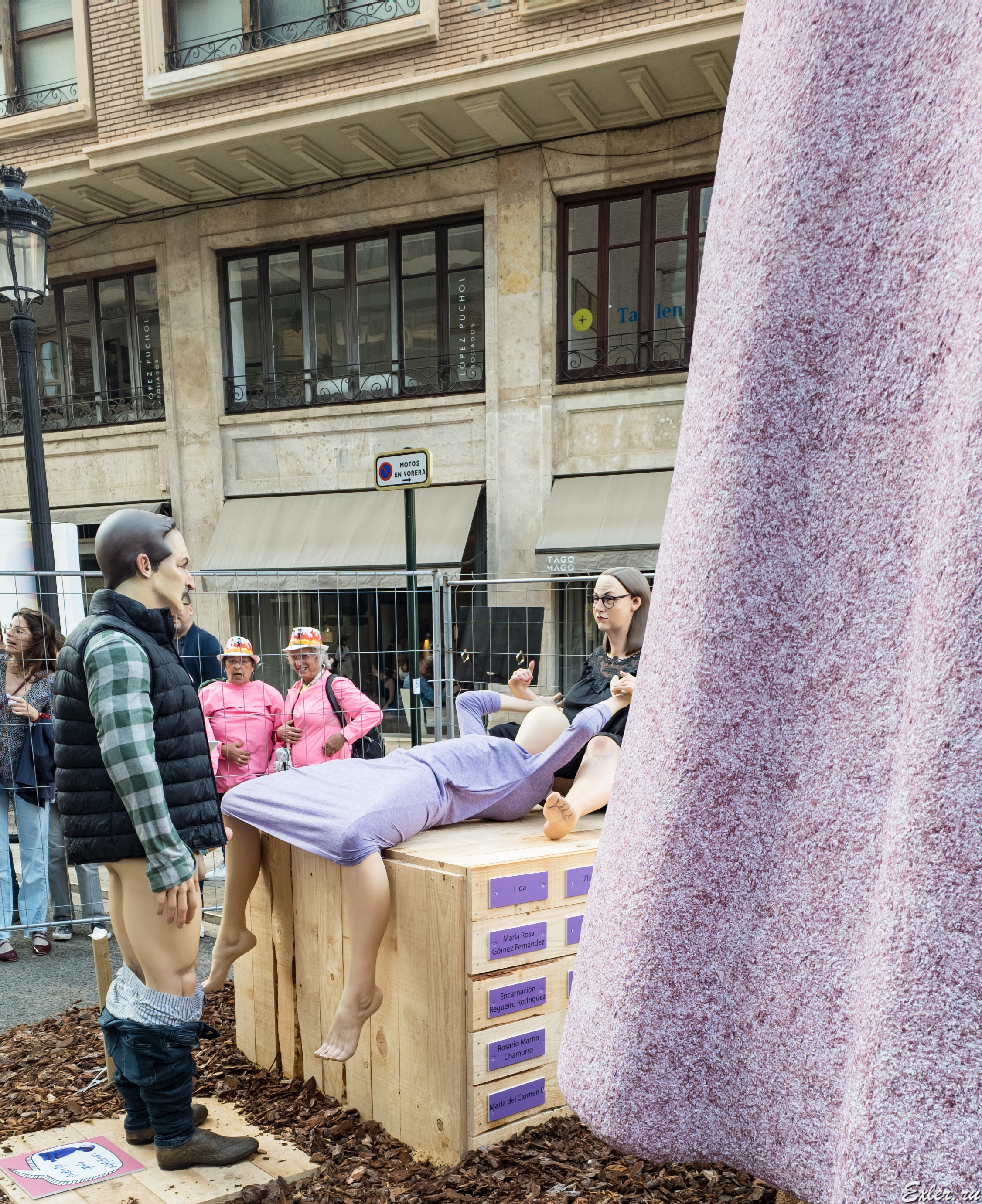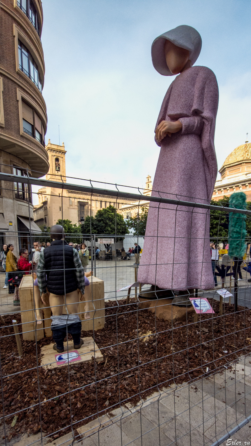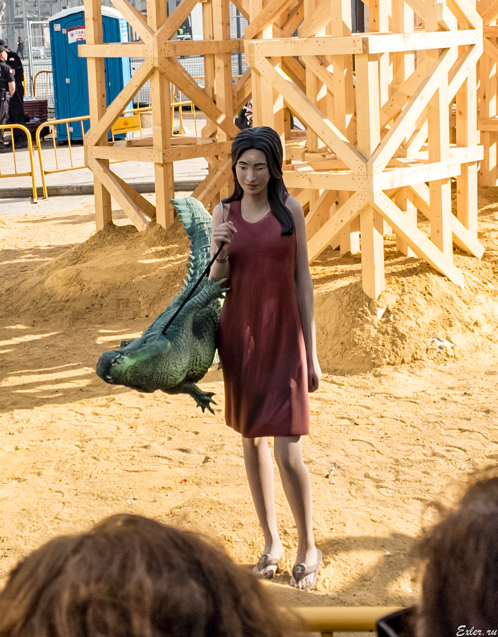 Вдали видна площадь муниципалитета, и на ней установлена городская большая фигура, которая в конкурсе не участвует. В ночь, когда все фигуры сжигают, эту на площади сжигают в самую последнюю очередь. Ближе подойти к ней в этот момент было практически невозможно, но позже нам удалось туда пробраться, и я покажу, как эта фигура вылядела вблизи.