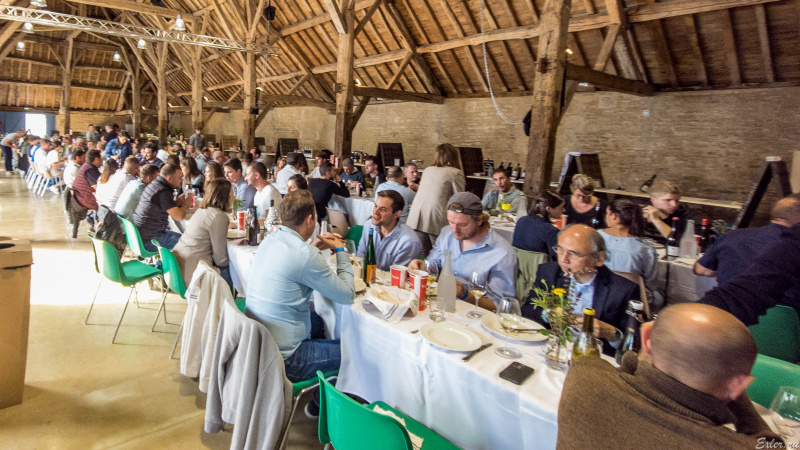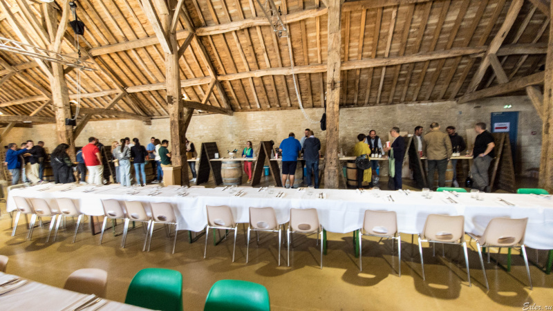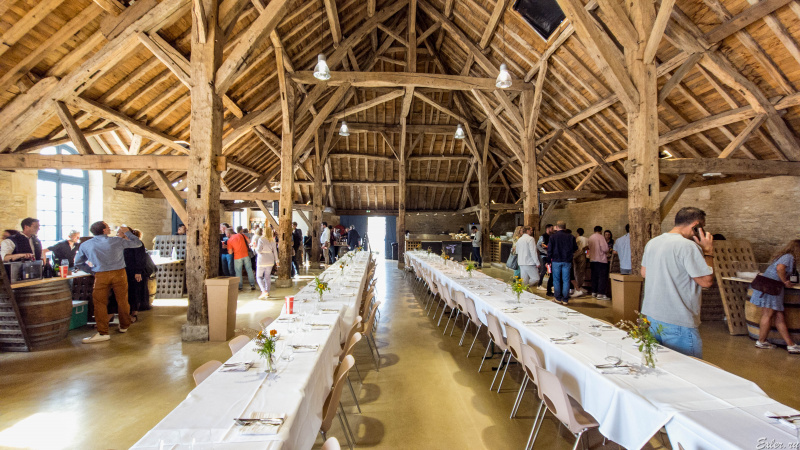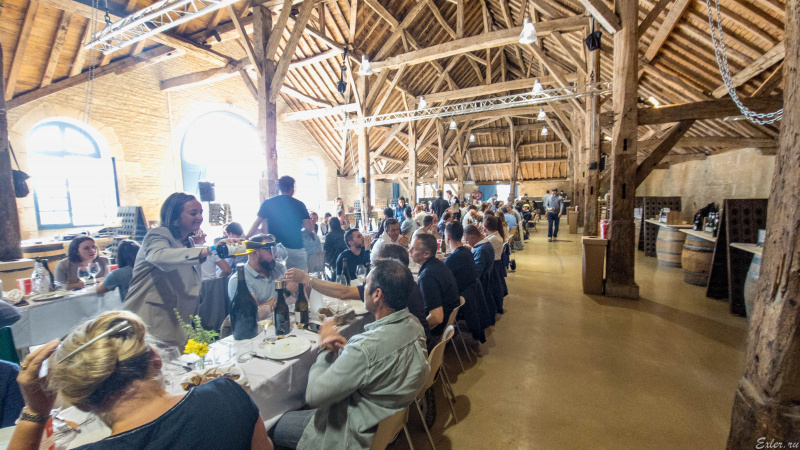 Проходило мероприятие вот в таком старинном амбаре, расположенном рядом с хозяйством Champagne Batisse-Lancelot в городе Ле-Рисе (Les Riseys). (Собственно, там же расположен замок Рисе-Ба, о котором я уже писал: мы как раз посетили замок перед этим праздником.)