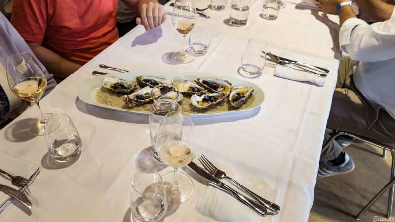 Сначала подали устрицы с очень интересным соусом от шефа, ну и дальше понеслось.