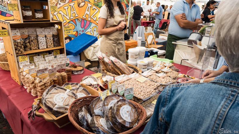 На Фестивале можно попробовать и купить не только вино. Здесь еще были стенды с колбасами, сырами, выпечкой и орехами фундук (орехи выращиваются в этом регионе).