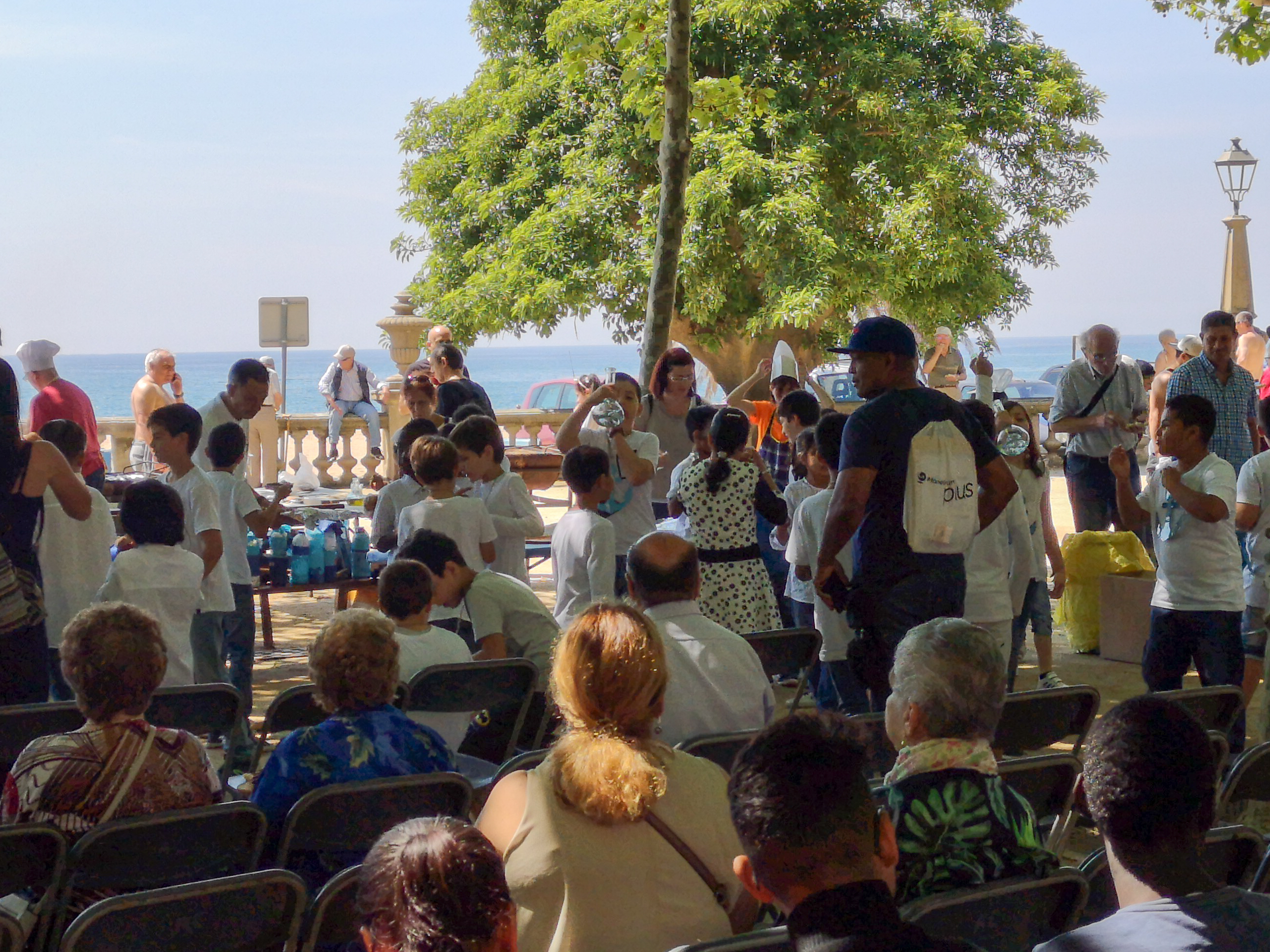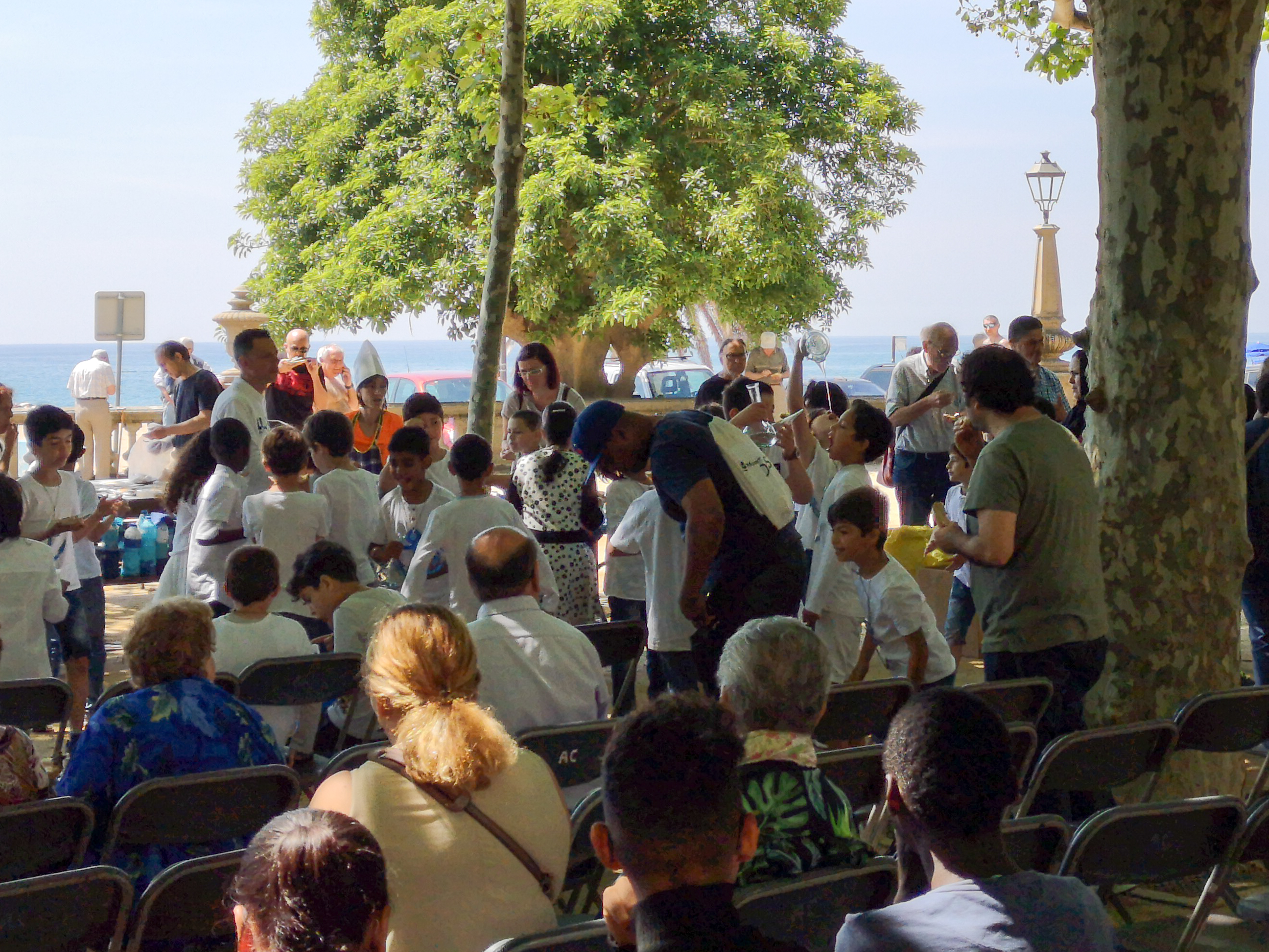 Местные отмечают какой-то мелкий праздник. Сначала детишки спели на каталанском несколько песенок, потом всем присутствующим начали вручать бутерброды со свежепожаренными сардинами, а для детей взрослые дяди проводили мастер-класс питья из поррона - это сосуд особой формы, которые позволяют пить вино, не прикасаясь губами к горлышку. Его можно передавать по кругу.