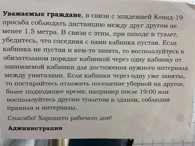 P.S. Замечу на всякий случай, что это объявление висит в сортире с кабинками, и у каждой кабинки - высокие перегордки слева-справа. Но администрацию такие мелочи не пугают.